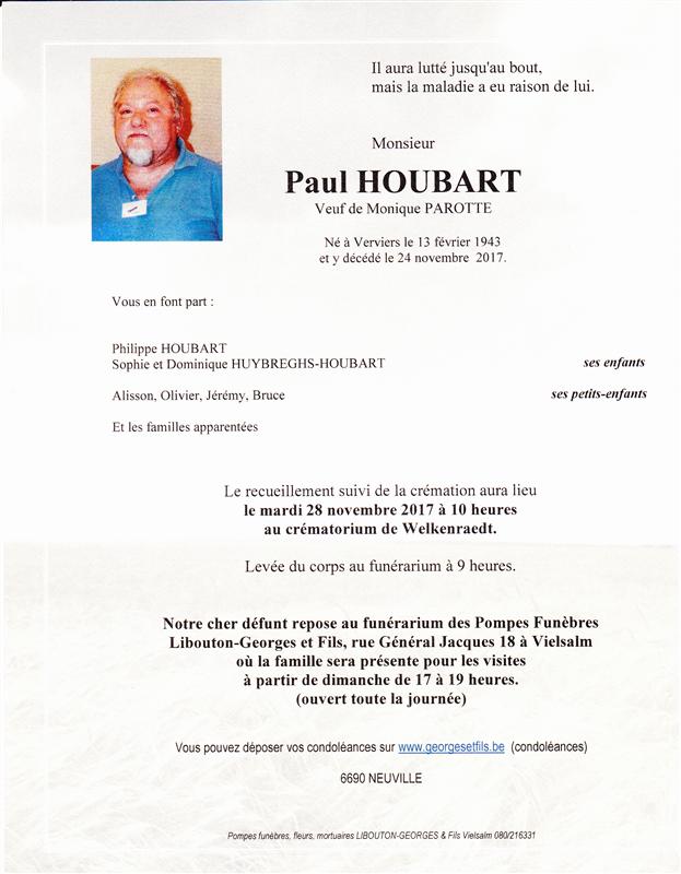 Décédé à Verviers (4800) le vendredi 24 novembre 2017 à l'âge de 74 ans