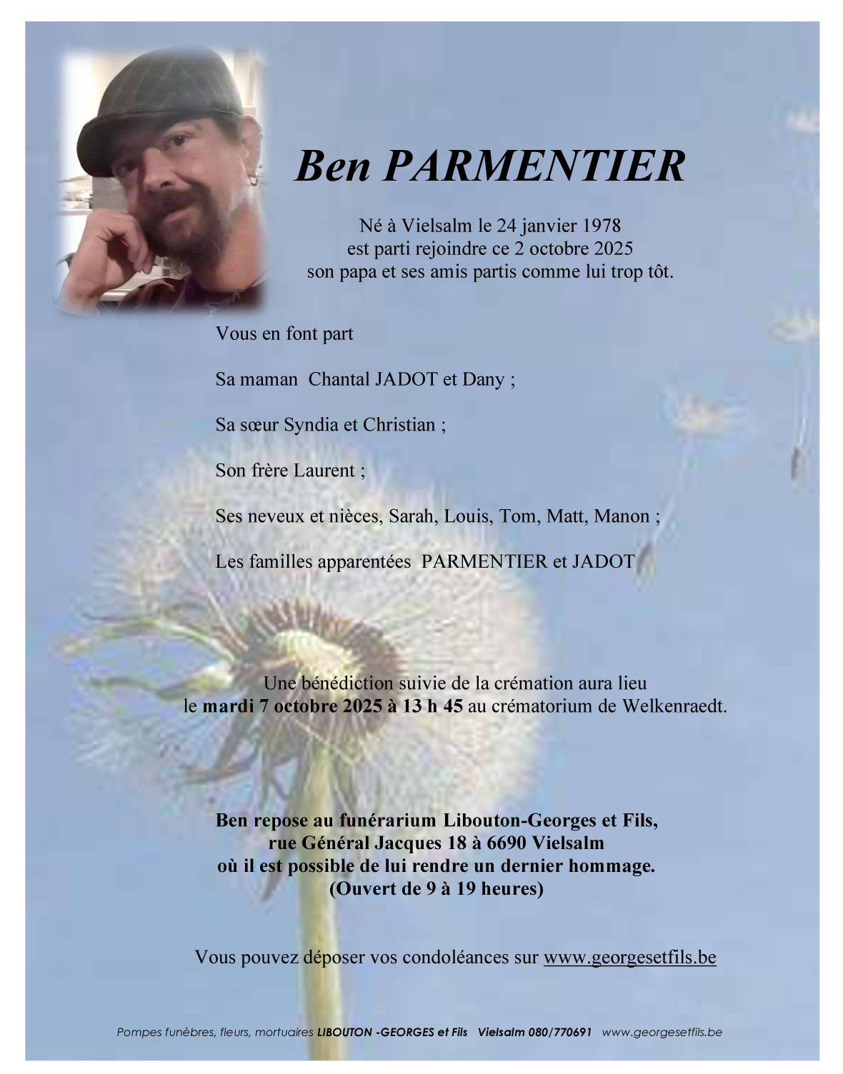 Décédé à Vielsalm (6690) le jeudi 2 octobre 2025 à l'âge de 47 ans