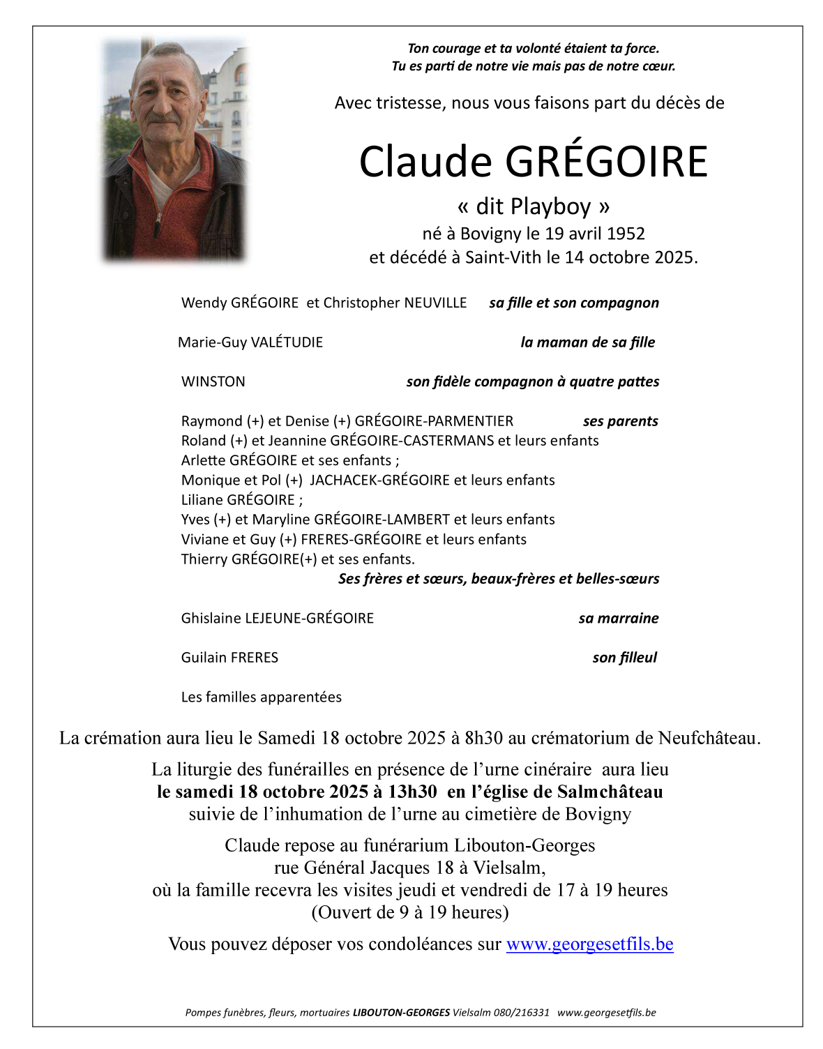 Décédé à Saint-Vith (4780) le mardi 14 octobre 2025 à l'âge de 73 ans