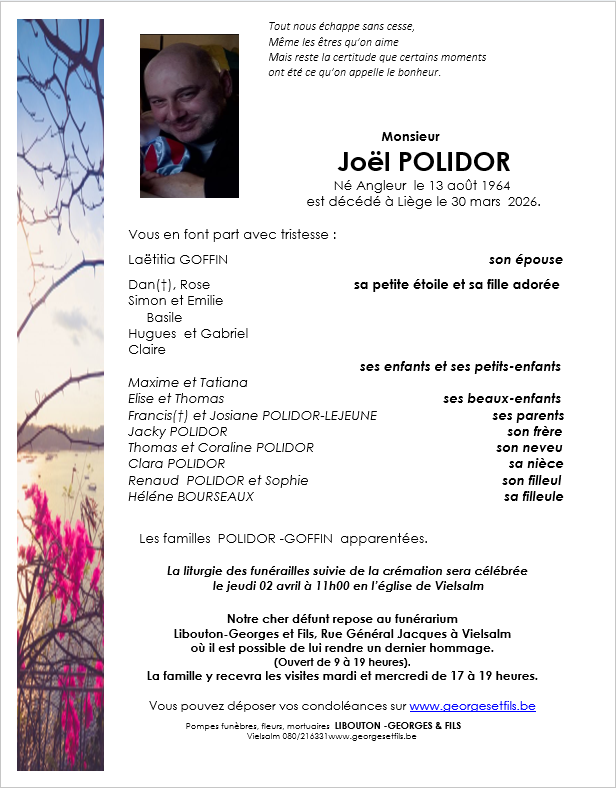 Décédé à Liège (4000) le lundi 30 mars 2026 à l'âge de 61 ans