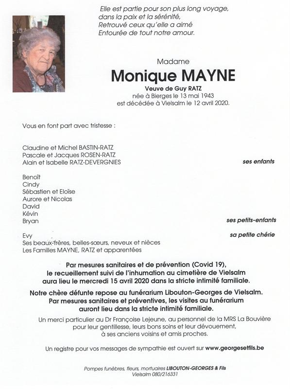 Madame Monique MAYNE veuve de Guy RATZ