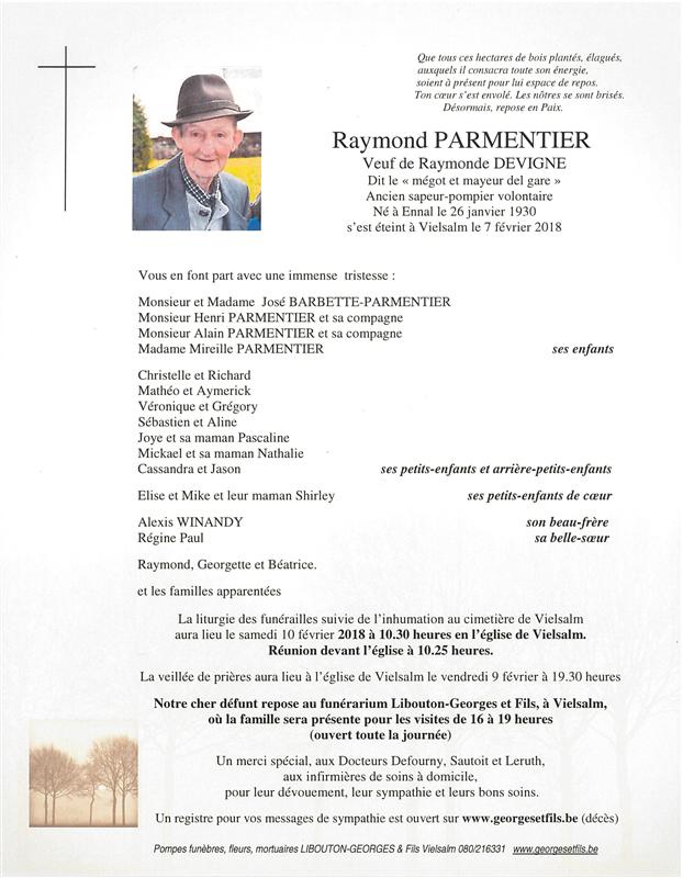 Décédé à Vielsalm (6690) le mercredi 7 février 2018 à l'âge de 88 ans
