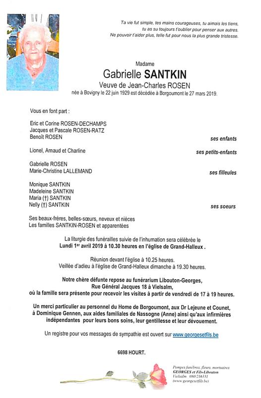 Madame Gabrielle SANTKIN veuve de Jean-Charles ROSEN