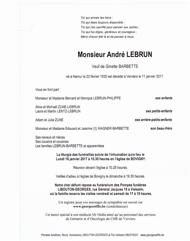 Veuf de Madame Ginette BARBETTE