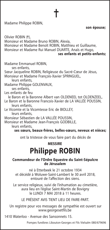 Décédé à Bruxelles (Woluwe-Saint-Lambert) (1200) le lundi 30 avril 2018 à l'âge de 83 ans