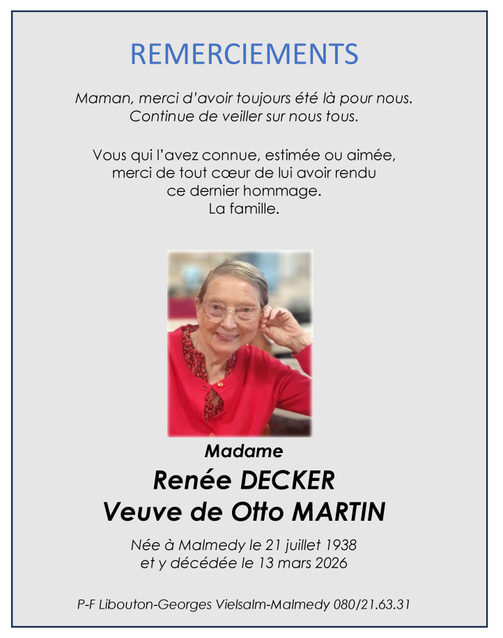 Madame Renée DECKER veuve de Otto MARTIN