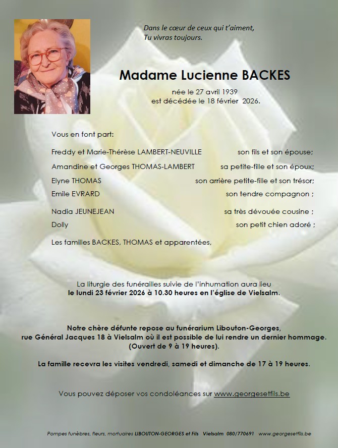 Décédée à Grand-Halleux (6698) le mercredi 18 février 2026 à l'âge de 86 ans