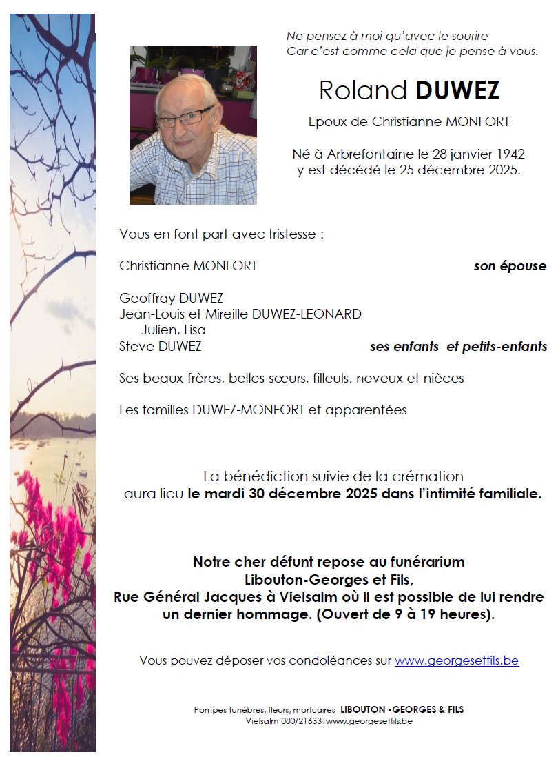 Décédé à Arbrefontaine (4990) le jeudi 25 décembre 2025 à l'âge de 83 ans
