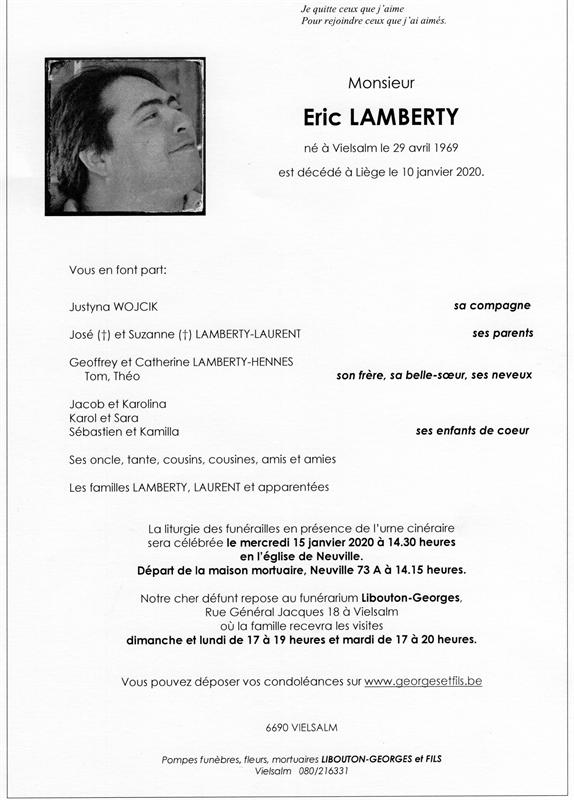 Décédé à Liège (4000) le vendredi 10 janvier 2020 à l'âge de 50 ans